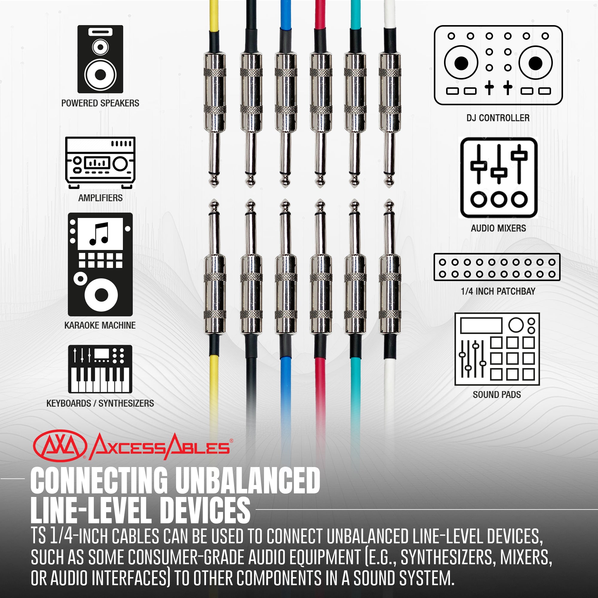 1/4-Inch (6.35mm) TS Male to 1/4-Inch (6.35mm) TS Male Unbalanced Mono Multicolored Instrument | Patch Cables