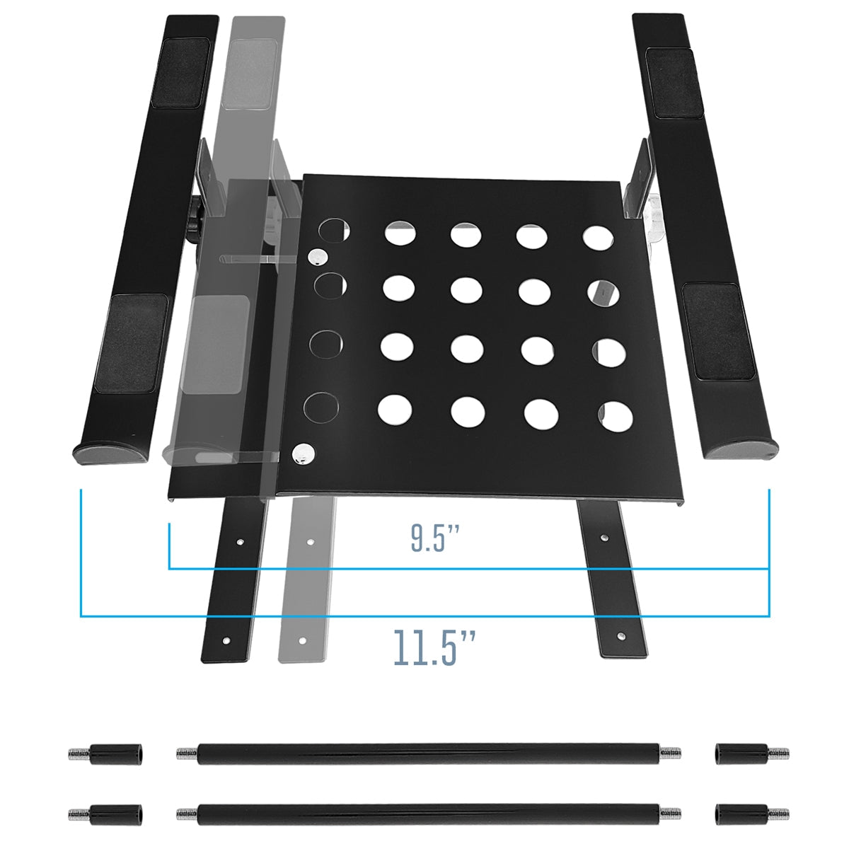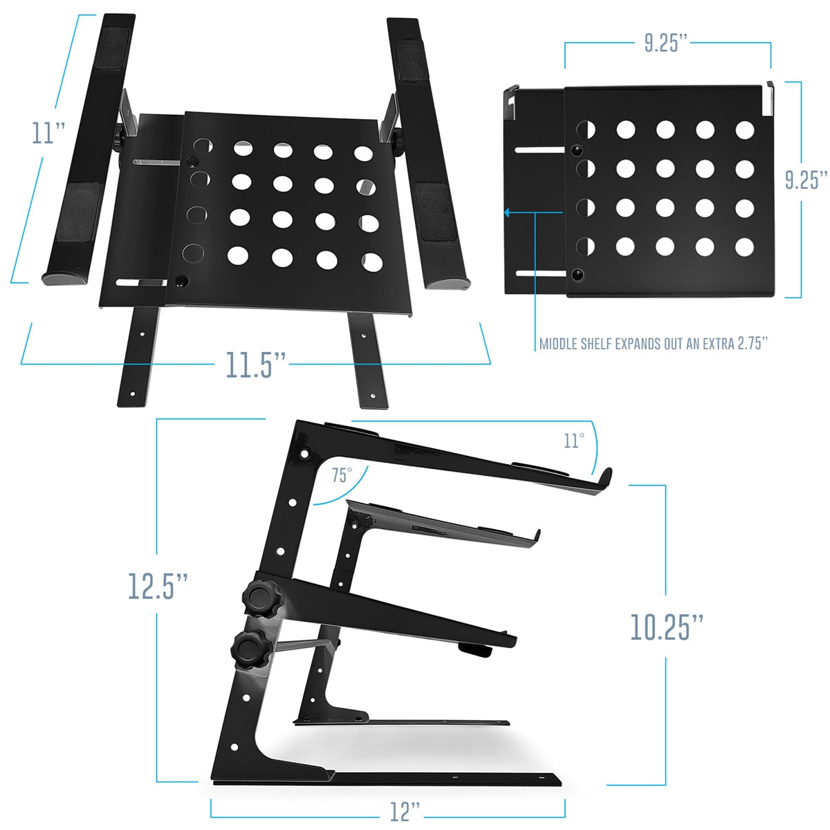 Holds laptops, DJ controllers, mixers, keyboards, synths, gaming gear, and more—each tier supports up to 10 lbs.