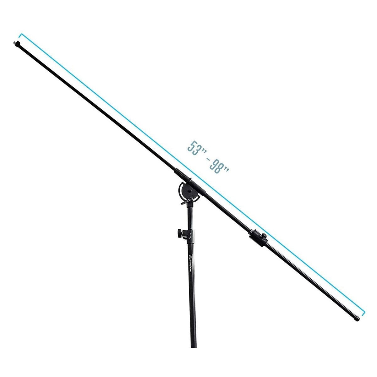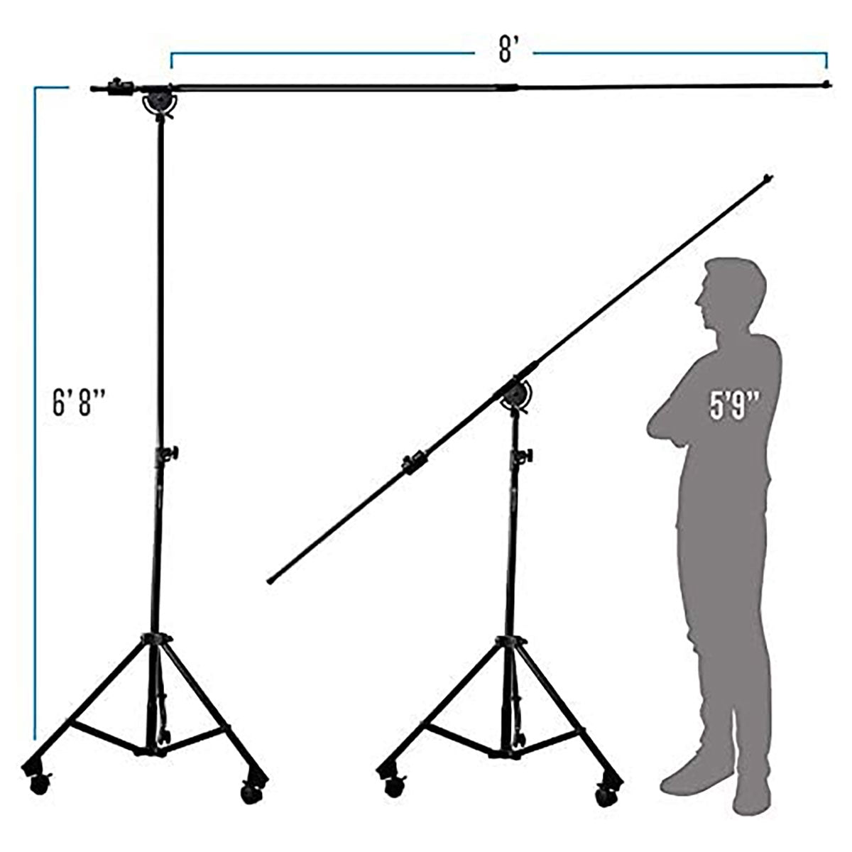 Adjustable Boom Arm: Telescoping boom extends from 4 ft 5 in to 8 ft 2 in, ideal for overhead and long-reach microphone placement