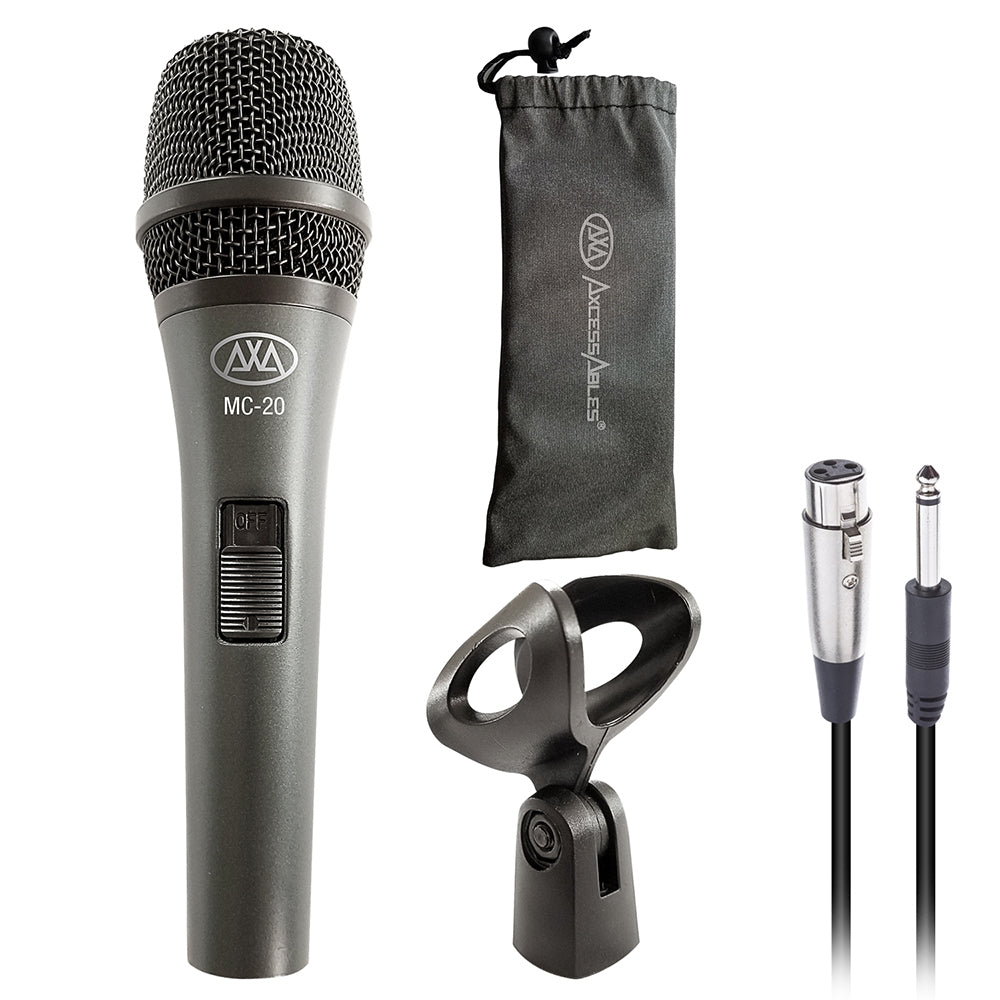 The AxcessAbles MC-20 is a dynamic cardioid microphone engineered for lead vocals, stage performance, and public speaking. Featuring a built-in presence boost, it delivers crystal-clear sound with enhanced vocal clarity—perfect for working musicians, DJs, and live events.