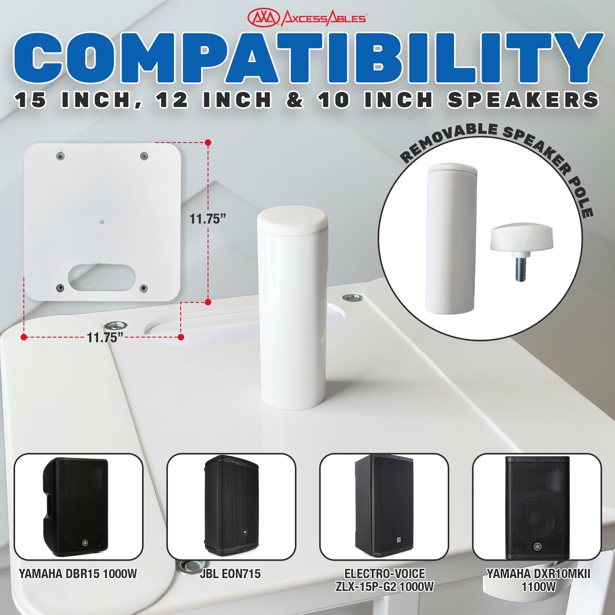 The AxcessAbles MVR-STAND Totem Moving Head Light Stand Pair is your all-in-one solution for an elegant and professional lighting or speaker display. Designed for mobile DJs, event producers, and AV professionals, this stand system features two white totem-style pillars that extend from 40" to 70.5" with no tools required for setup. Included are both white and black scrims, allowing for up lighting effects or stylish cable concealment. The top plate supports lighting fixtures, or use the 35mm adapter insert for mounting a speaker. With leveling feet for balance and EVA pads for surface grip, these stands are functional, durable, and visually stunning. Everything packs into the included travel case for easy portability. Whether you're hosting a wedding, DJing a party, or setting up a corporate event, the MVR-STAND is the ideal combination of form and function.
