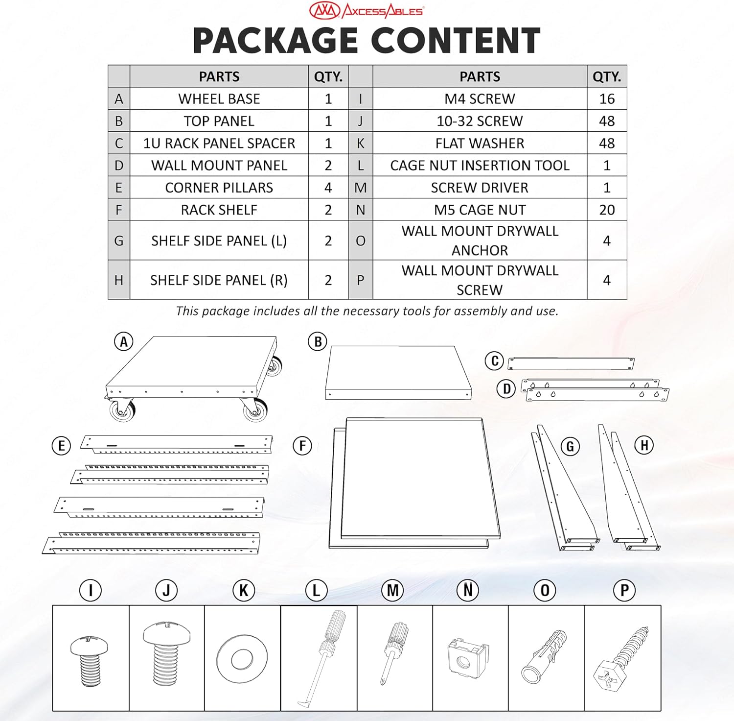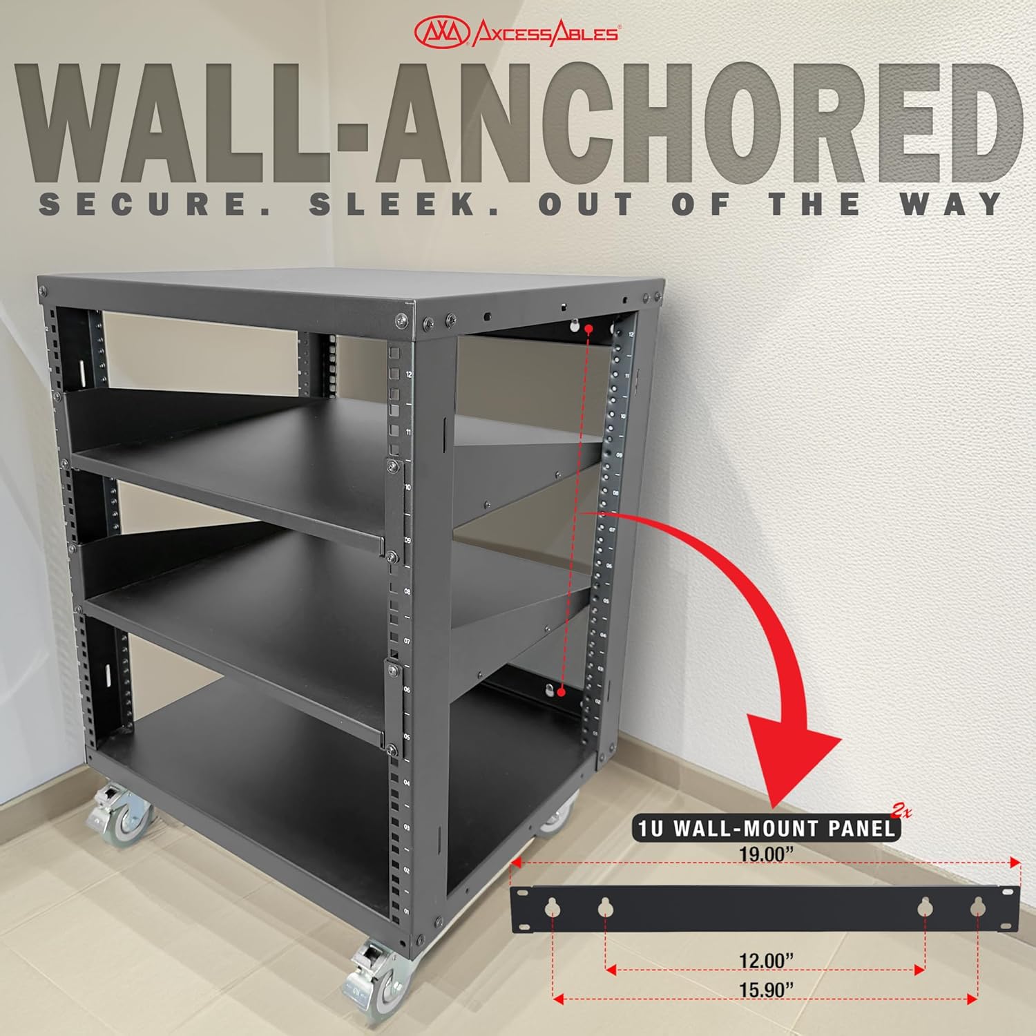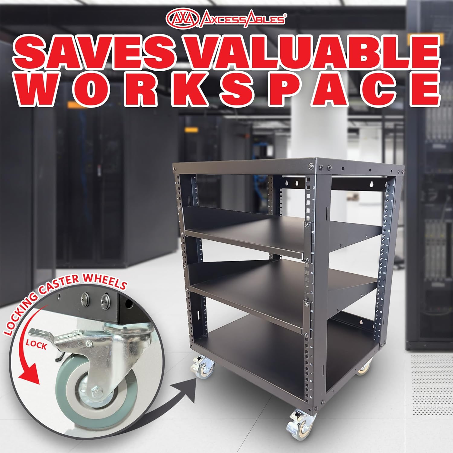 Adjustable Storage: Includes two rack shelves (assembly required) and supports gear up to 18 inches deep—ideal for servers, amps, mixers, and more.