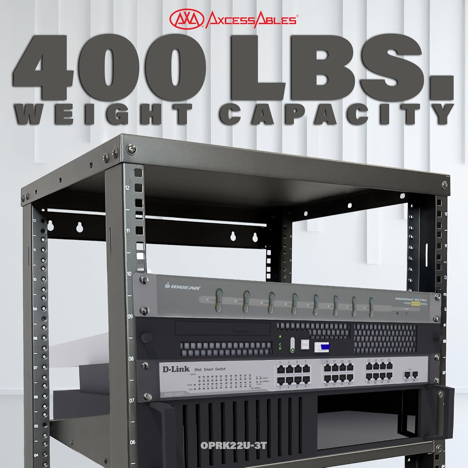 Generous Storage: Comes with two adjustable 19-inch rack shelves (assembly required before install). Rack supports gear up to 18 inches deep.
