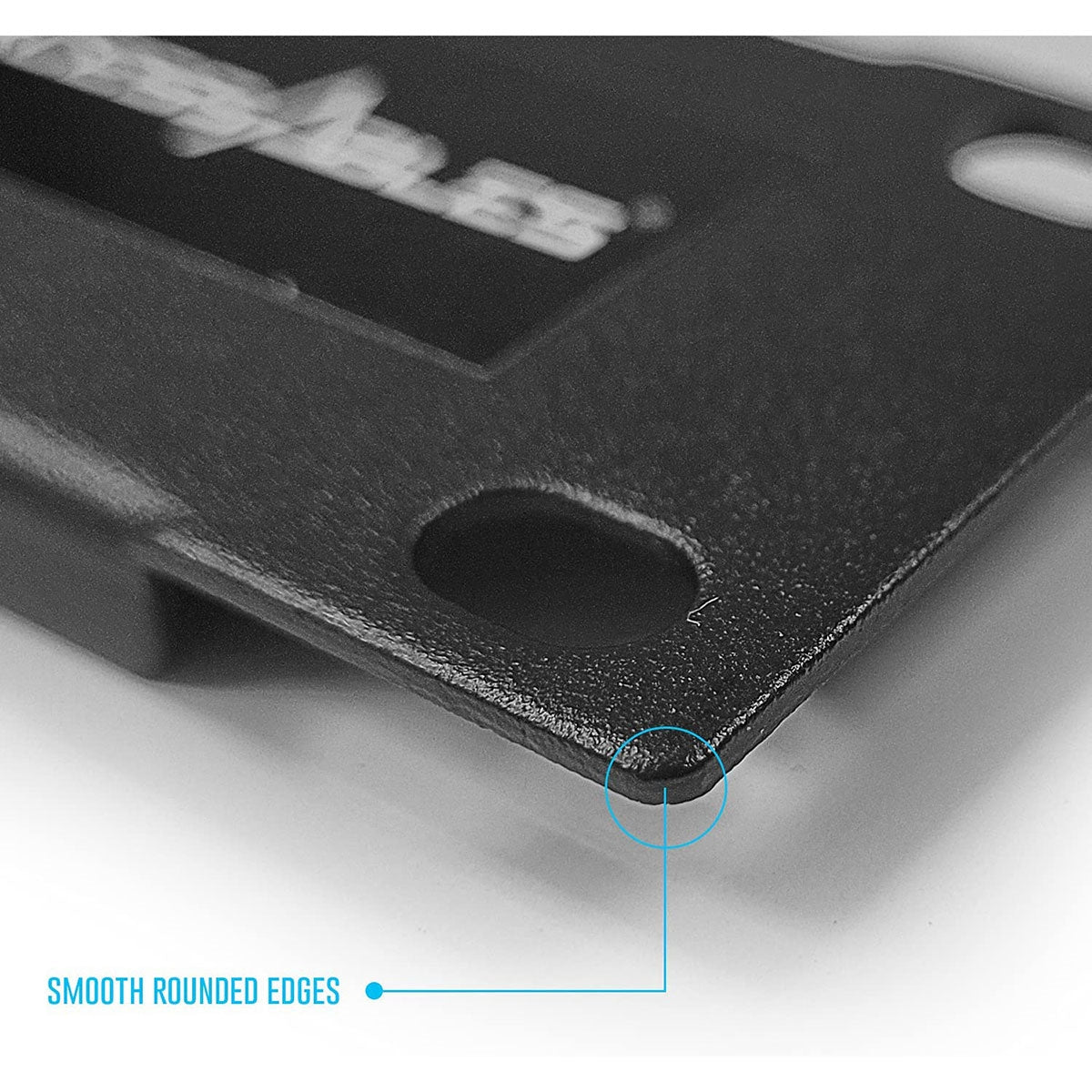 Features a textured black powder-coated finish that matches most A/V and pro audio gear, resisting wear and scratches.