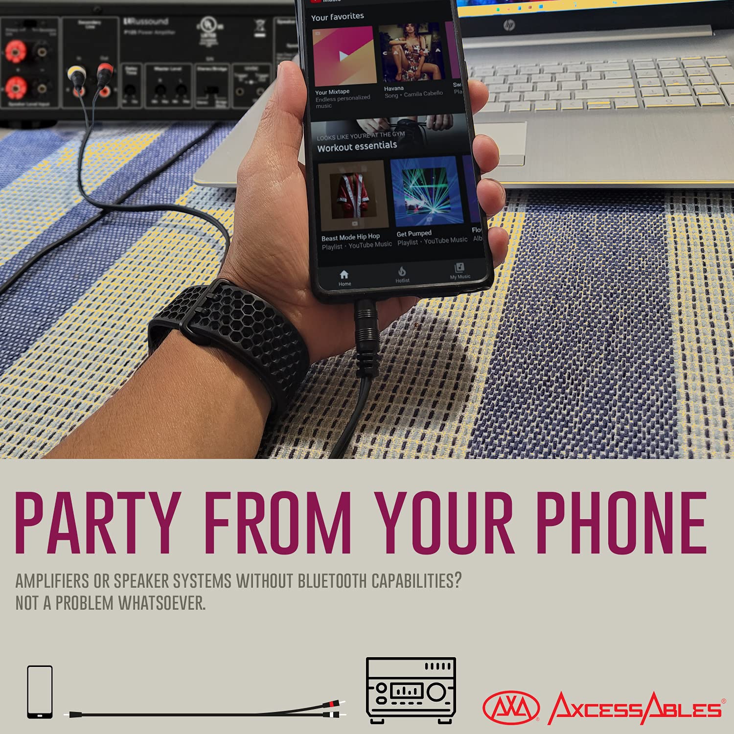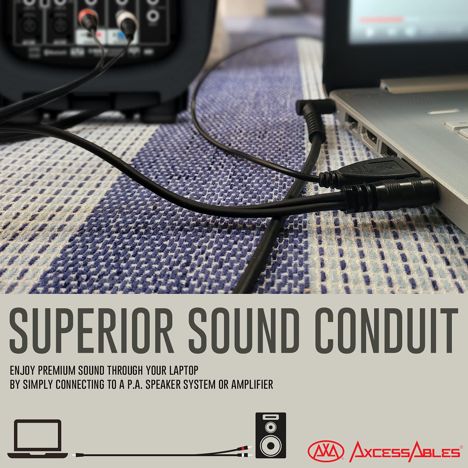 AxcessAbles TRS18-D14TS109 Audio Cable - 1/8-inch (3.5 mm) TRS to Dual 1/4-inch (6.35mm) TS Stereo Breakout Cable for Phone, Laptop, Tablet, MP3 Player Patch to Mixing Console (10ft)