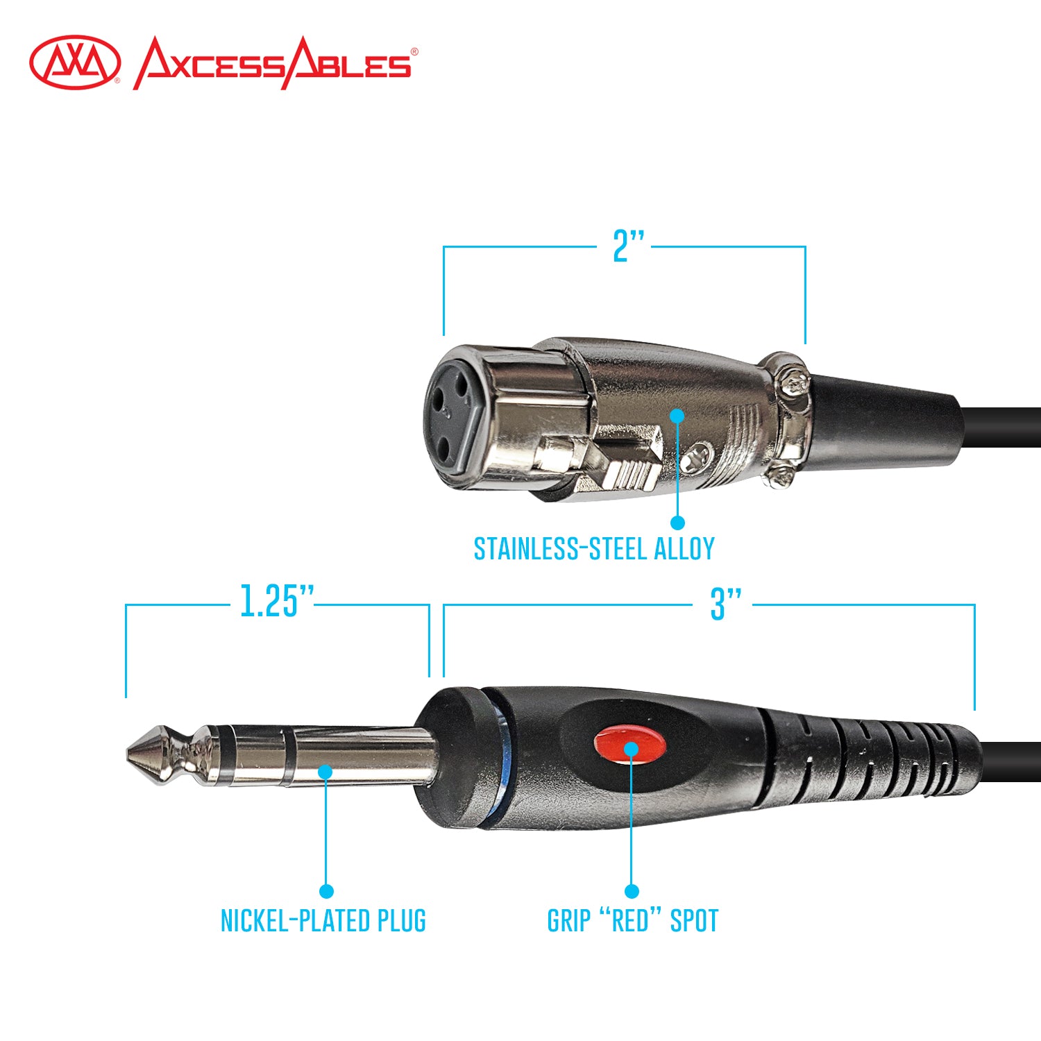 AxcessAbles 1/4-inch TRS Male to XLR Female Audio Cable (10ft)