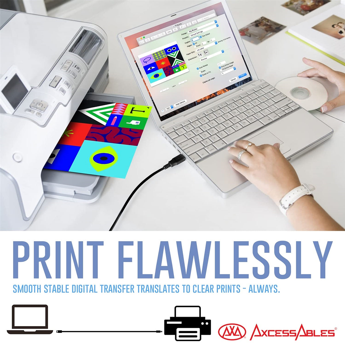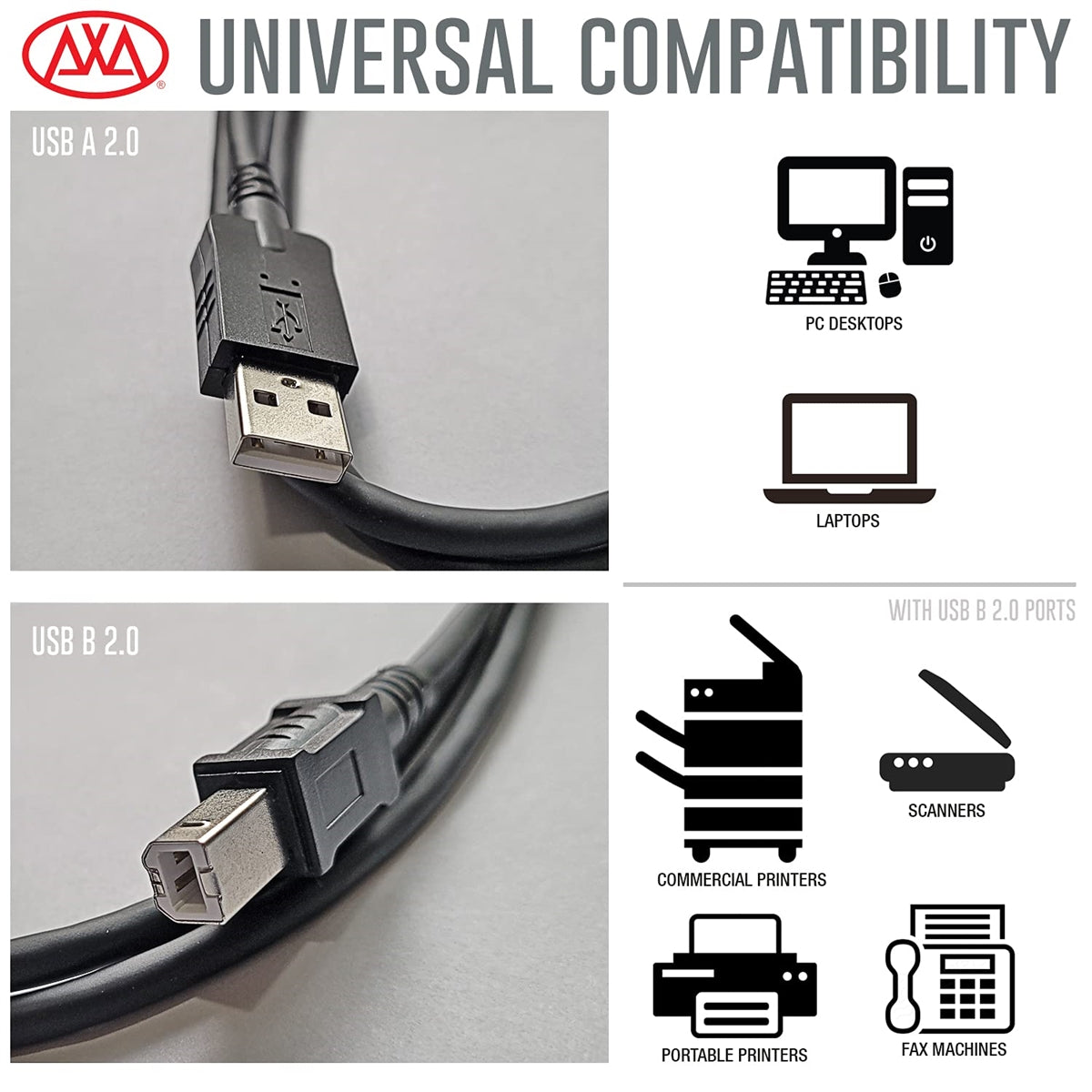 Versatile Usage: Compatible with a range of digital devices, such as printers, scanners, fax machines, hard drives, servers, and keyboards, all requiring USB A to Type B connectors.